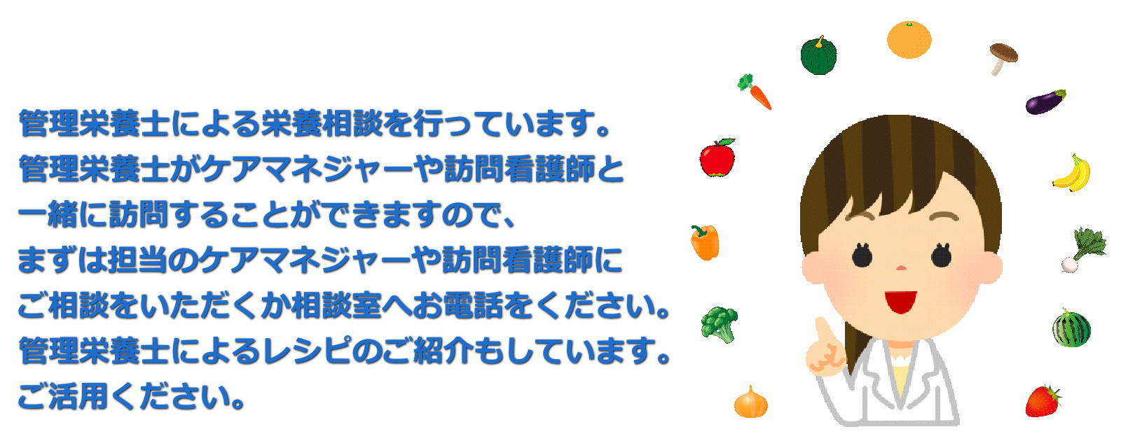 栄養相談とレシピ 管理栄養士による栄養相談を行っています。管理栄養士によるおすすめレシピも掲載していますのでご活用ください。 相談内容… 例えば、「減塩についての工夫を知りたい」などのご相談にはご病気やご体調に合わせて最新の情報を提供させていただきます。詳しくはこちら 栄養相談のお申し込みは… 栄養相談申込書はこちらから